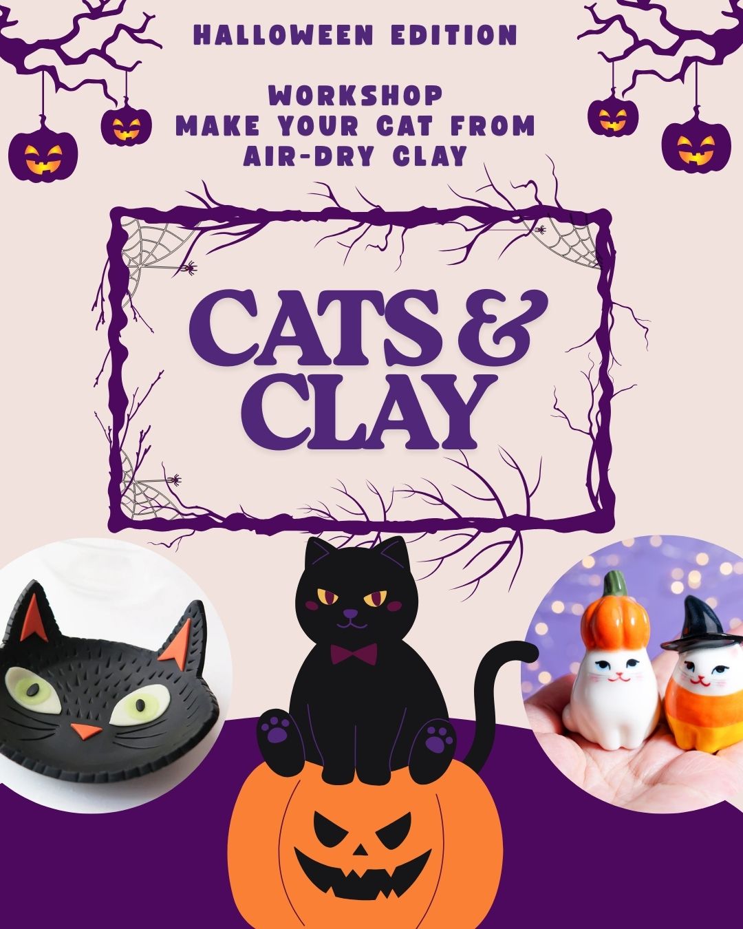 Get into the spooky spirit with a fun and relaxing air-dry clay workshop surrounded by real, purring inspiration! 🐱👻
